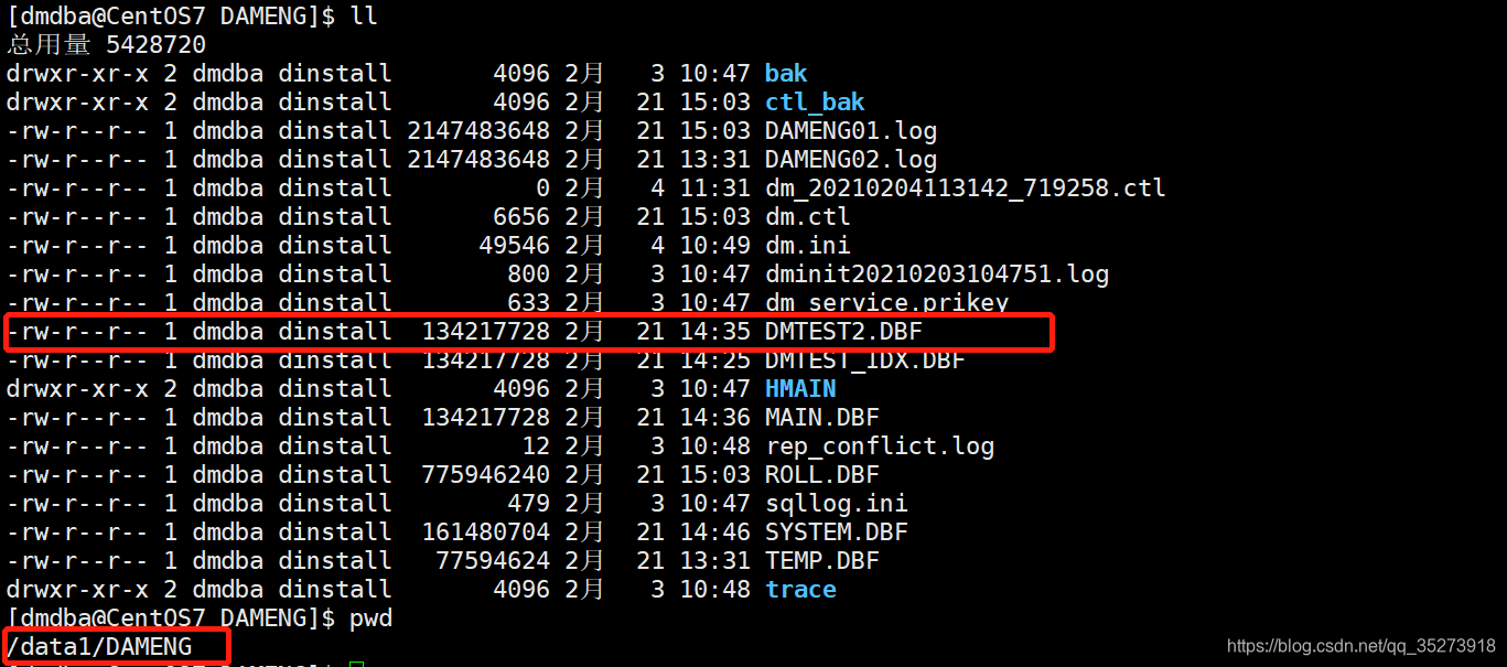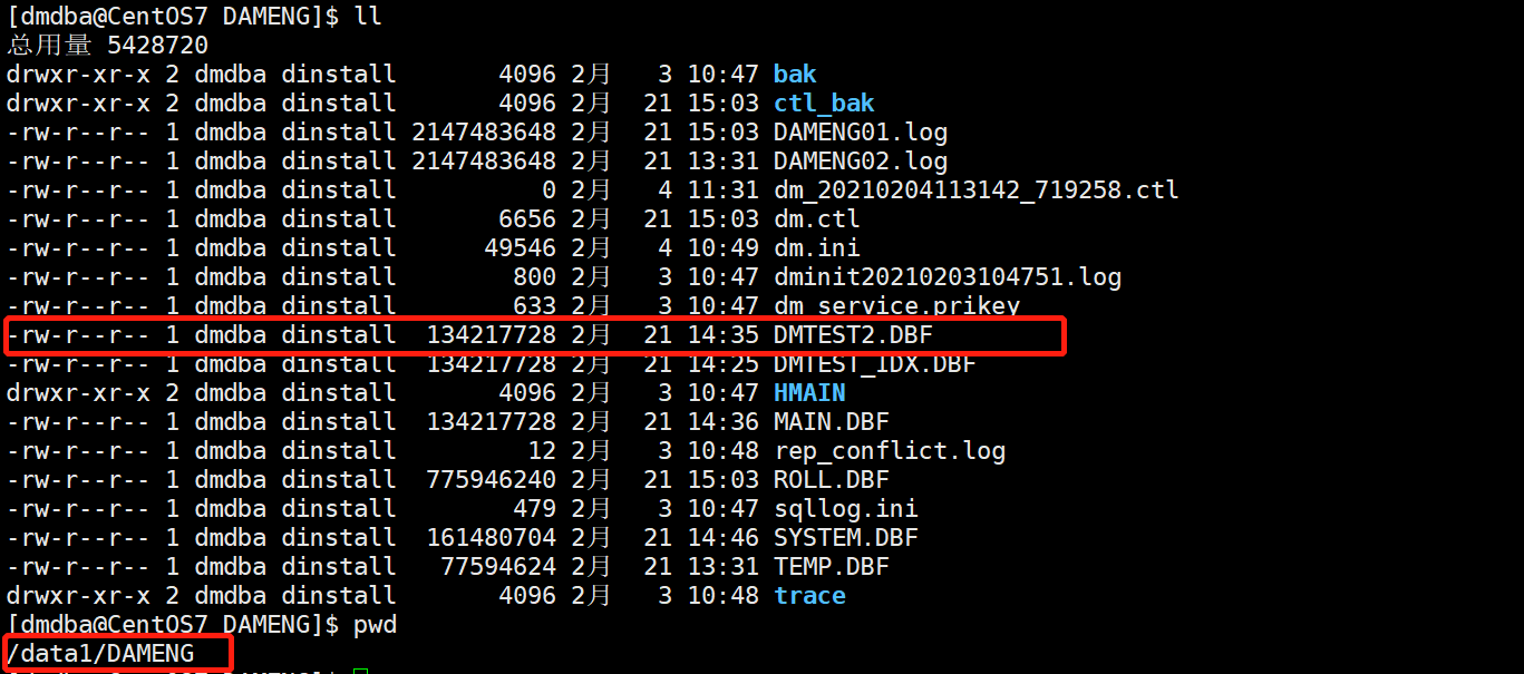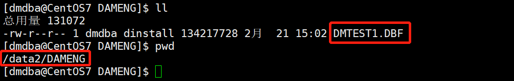 [dmdba@CentOS7 ~]$ mv /data1/DAMENG/DMTEST2.DBF /data2/DAMENG/
