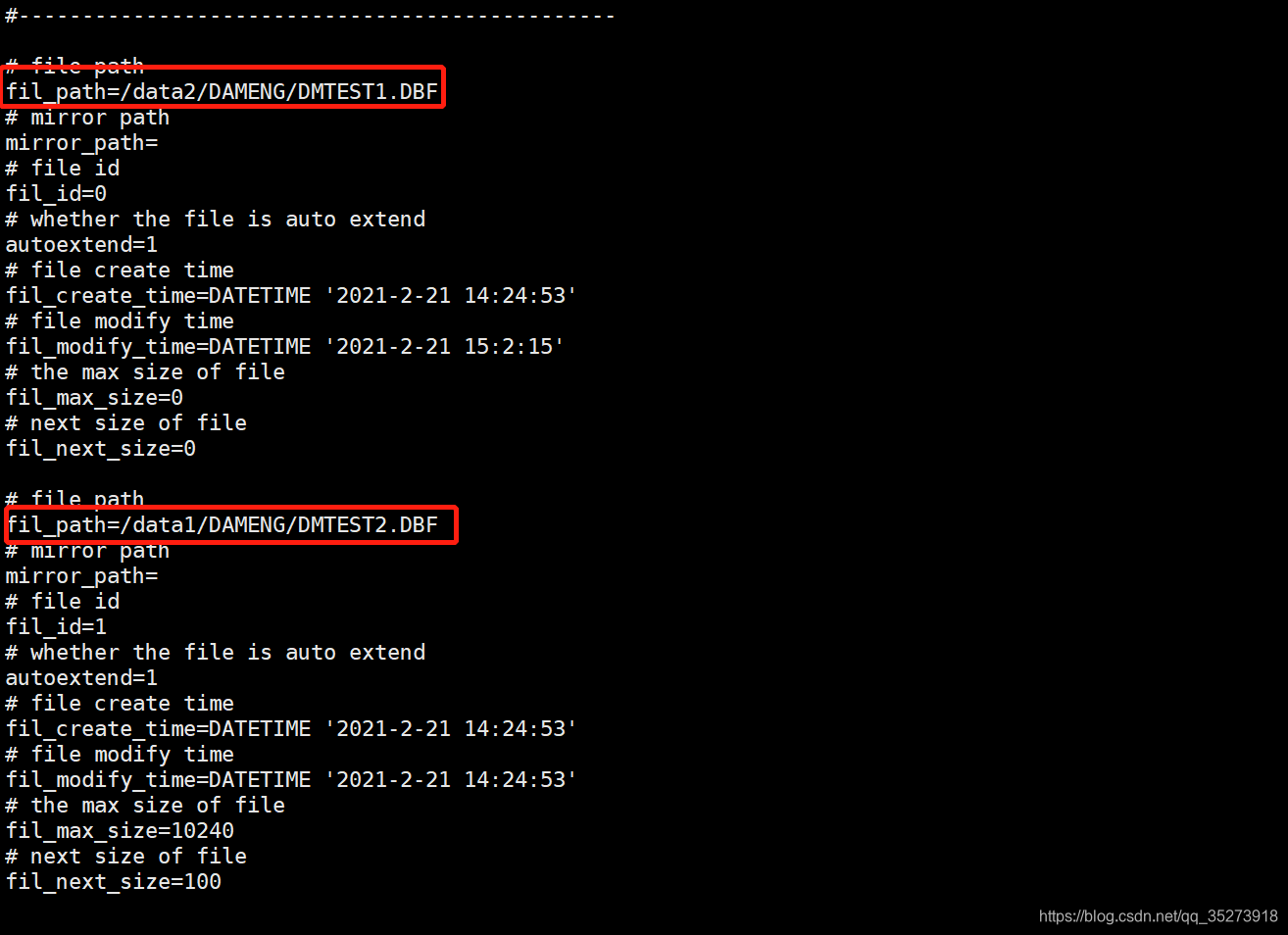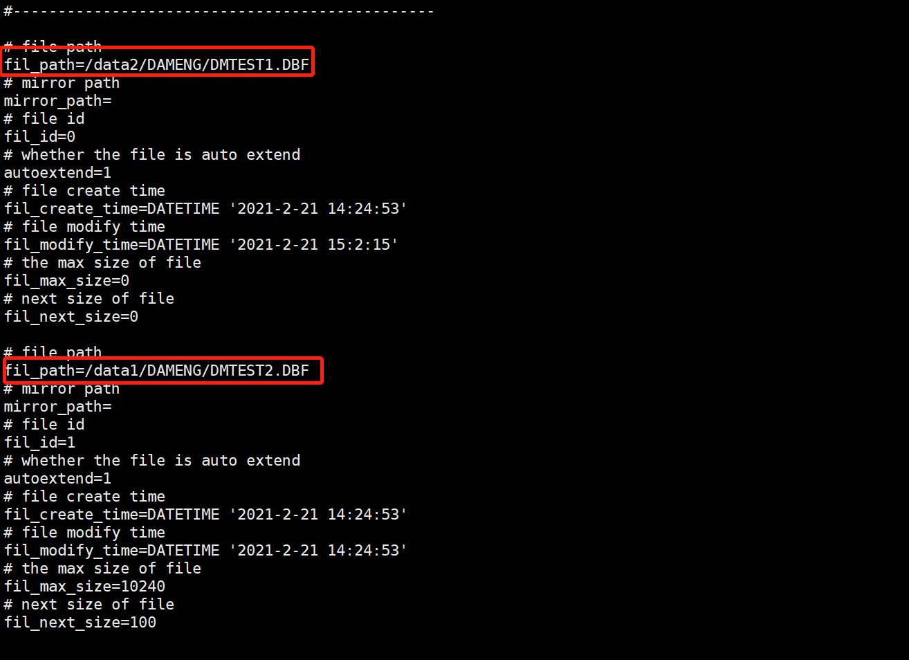 fil_path=/data2/DAMENG/DMTEST1.DBF
