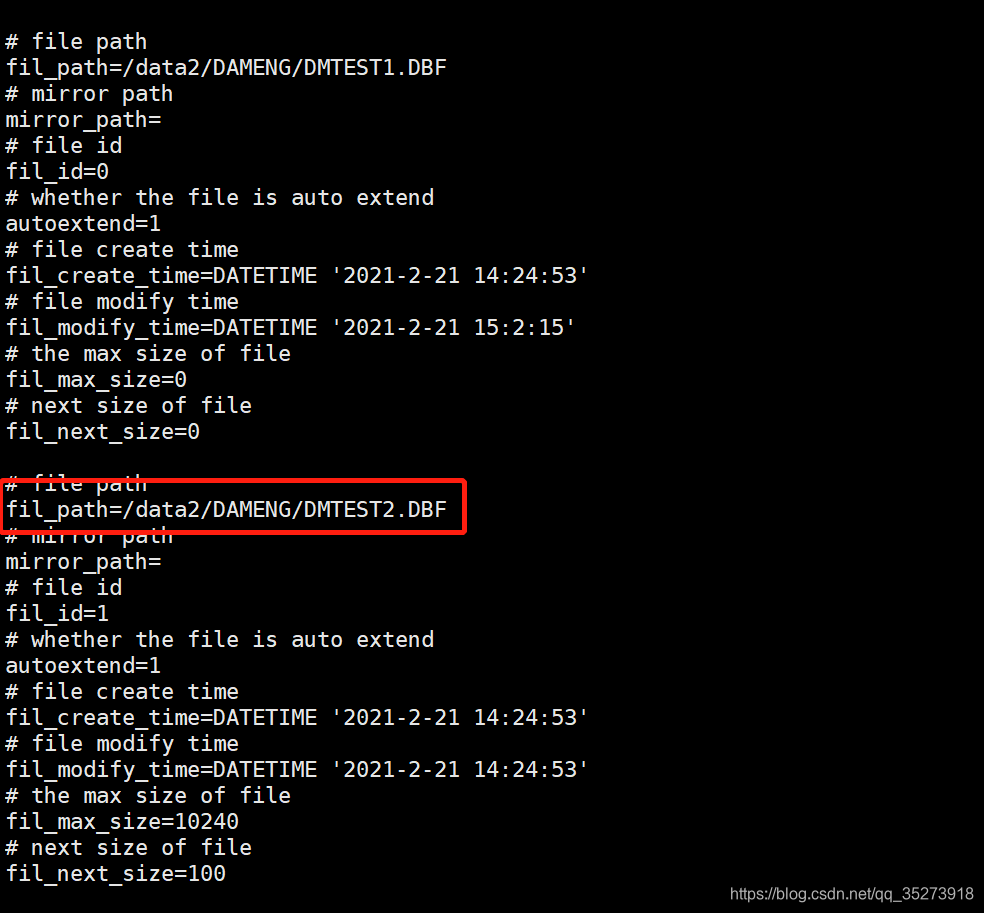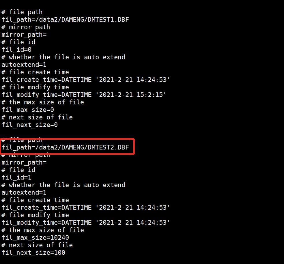 fil_path=/data2/DAMENG/DMTEST2.DBF