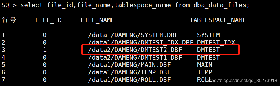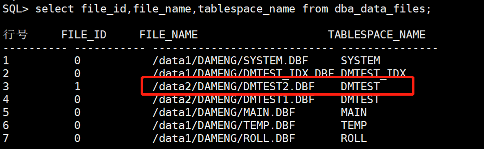 3 1 /data1/DAMENG/DMTEST2.DBF DMTEST