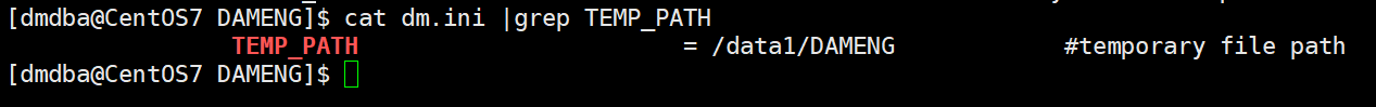 注意:临时表空间路径无法在数据库服务启动时修改,无法执行联机脱机操作。在数据库服务停止时,如果要修改临时表空间数据文件的路径,无需修改控制文件,因为在控制文件中并没有保存临时表空间的路径信息。临时表空间的路径信息在dm.ini中修改,在dm.ini中有一个参数为:TEMP_PATH,默认路径为数据库目录下