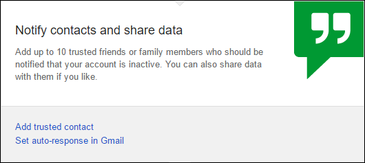 Inactive Account Manager is what fans of old spy movies and psychological thrillers will immediately recognize as a “dead man’s switch”. Once activated if you do not interact with your Google account in X amount of time, then Google’s servers will automatically either notify your trusted contacts and/or share specified data with those select contacts. Or, at your instruction, it can wipe your account.