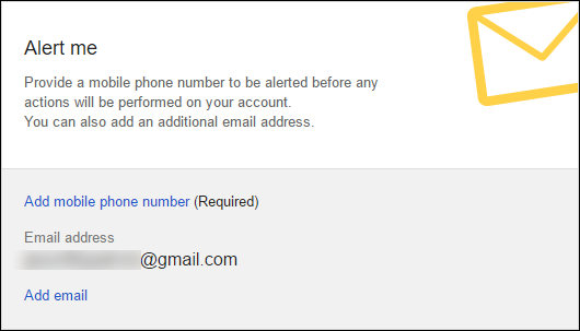 此外,如果唯一列出的电子邮件地址是您的Gmail帐户,则应添加一个经常使用的辅助电子邮件地址(如果您不定期使用Google帐户,则显然不会通过Gmail收到通知)。