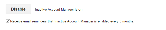 You will be notified 1 month before the actions you have selected take effect. Your mobile number is required and you cannot enable the Inactive Account Manager without it–you will need to verify you control this number by supplying the verification code sent to your phone.