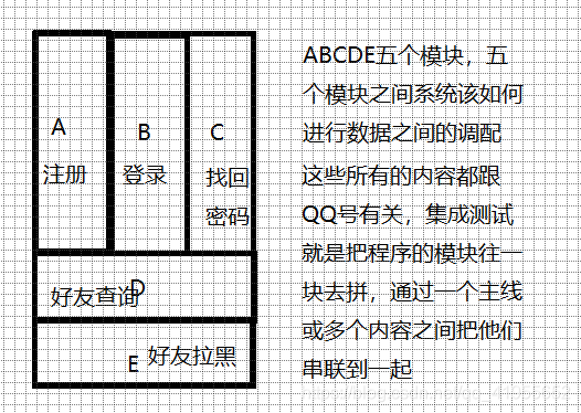 集成测试:也称组装测试,通常在单元测试的基础上,将所有程序模块进行有序的,递增的测试,集成测试是检验程序单元或部件的接口关系,逐步集成为符合概要设计要求的程序部件或整个系统