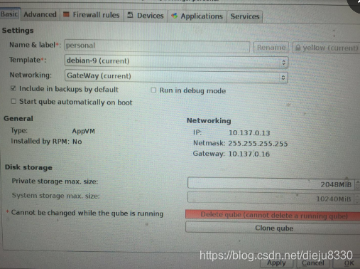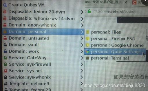 - qube os 里面基于debian 9 的系统,起名为personal(最终用来上网的系统)