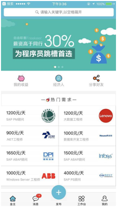 他给我的APP 叫“自由职客”,是一款为IT自由职业者服务的平台,是专为撮合企业项目和软件工程师合作的。上面很清楚描述了很多项目需求,各类项目的薪水报酬,还可以代缴社保和住房公积金之类,正是我梦寐以求的平台。于是我也加入牛哥的队伍,成为了一个自由职业的程序员。