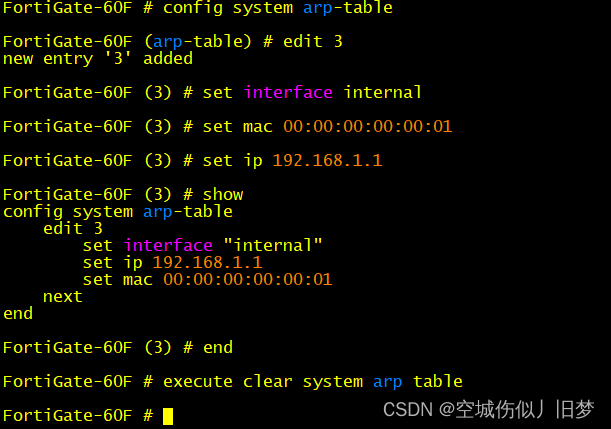 ②Fortigate配静态ARP entry命令