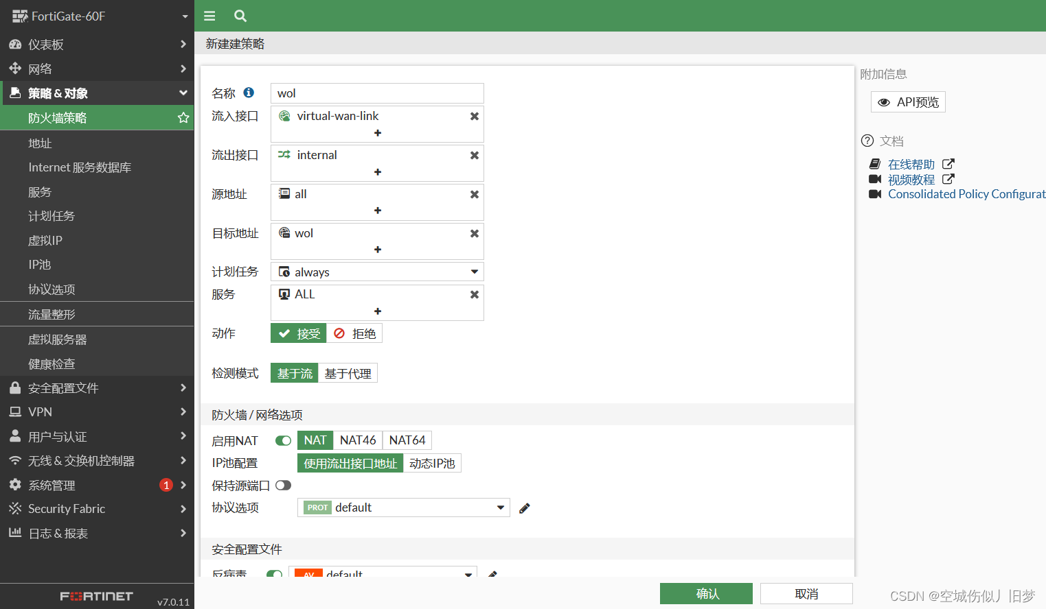 飞塔防火墙配置局域网主机网络唤醒