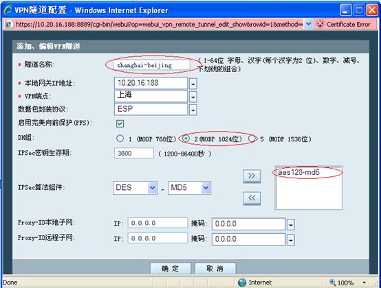 隧道中 ipsec 算法组件 选择 aes128-md5