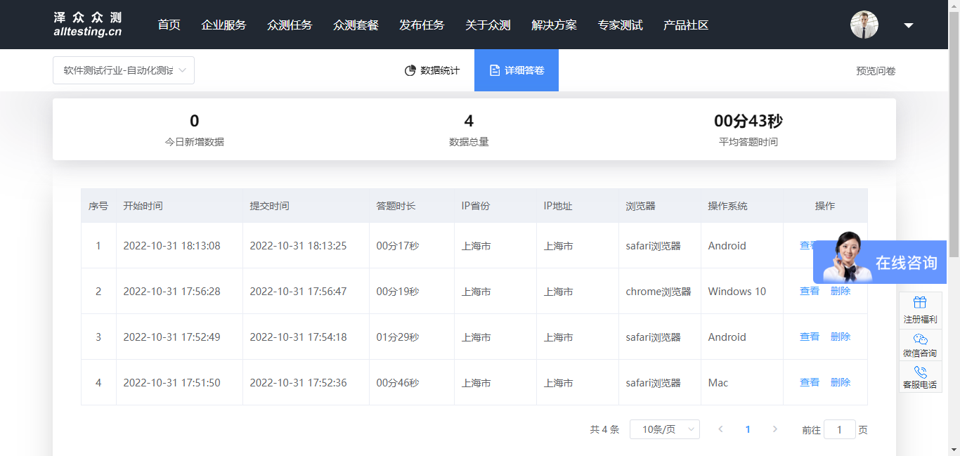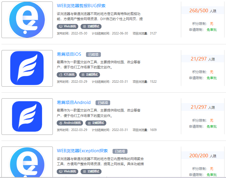 泽众众测平台上线至今已有7个年头了,在国内也是较早推出了众包测试,后来又上线了,远程真机,在线性能测试、第三方测评服务和应用推广等等,平台积累了海量开发者和测评爱好者,测评爱好者主要包括学生、老师、兼职测试工程师、行业大咖等等,平台用户近50000人,也助力国内企业软件质量提升。早期泽众众测平台所有业务都在www.alltesting.cn下面,后来众测平台zc.alltesting.cn独立运营,更名泽众众测。