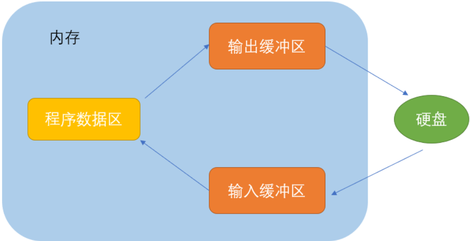 ANSIC 标准采用“缓冲文件系统”处理的数据文件的,所谓缓冲文件系统是指系统自动地在内存中为程序中每一个正在使用的文件开辟一块“文件缓冲区”。从内存向磁盘输出数据会先送到内存中的缓冲区,装满缓冲区后才一起送到磁盘上。如果从磁盘向计算机读入数据,则从磁盘文件中读取数据输入到内存缓冲区(充满缓冲区),然后再从缓冲区逐个地将数据送到程序数据区(程序变量等)。缓冲区的大小根据C编译系统决定的。