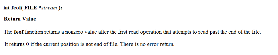 牢记:在文件读取过程中,不能用feof函数的返回值直接用来判断文件的是否结束。