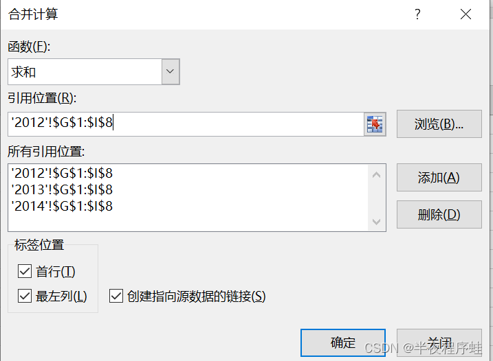 几张表合计为一张:在数据模块-合并计算-选择函数类型-引用位置为你要合并的表格部分-点击添加-有表头选选首行(需要看数据构成将创建指向源数据的链接勾选上)如图4.1所示: