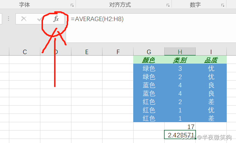 在开始中有自动求和栏,能够计算平均值和合计等值。如图2.4: