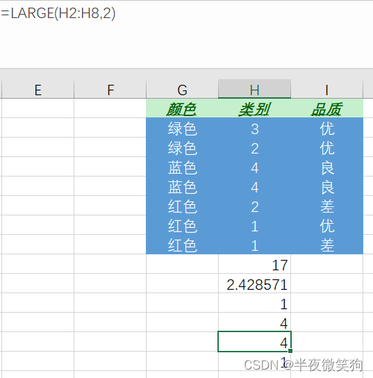 3、第几个次序的数(有LARGE和SMALL两个函数):该函数拥有的引数包含array(资料范围)和K(次序)代表该范围内第几个大的数,SMALL为第几个小的数。需要注意的是这两个函数是指这些数中(如K=2时它不是3,而是4)的第几个大小的数,如图9.3: