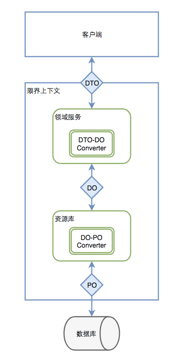 同时,DTO与DO的转换发生在领域服务内,DO与PO的转换发生在资源库内。