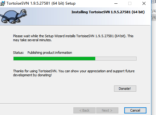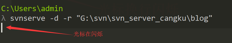 执行完成之后:会发现光标换行,持续闪烁,这代表执行成功,此时SVN服务端已经启动: