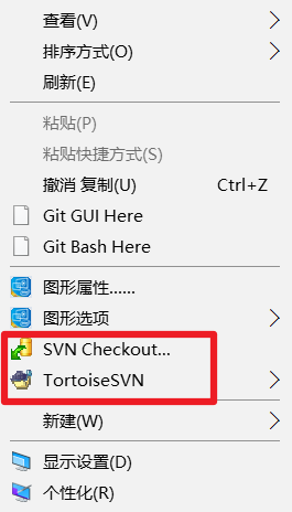 ⑤客户端软件安装完成,在桌面右键菜单可以看到 svn checkout选项和TortoiseSVN选项,如果没有出现,可能需要重启电脑。