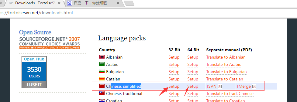 我们选择下载简体中文语言包,下载对应的32位或64位安装软件。