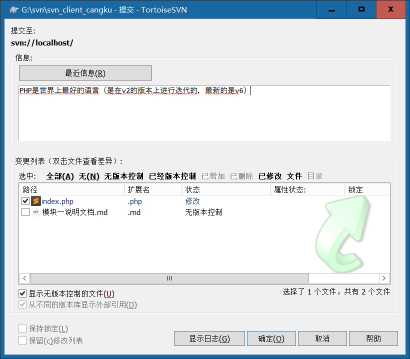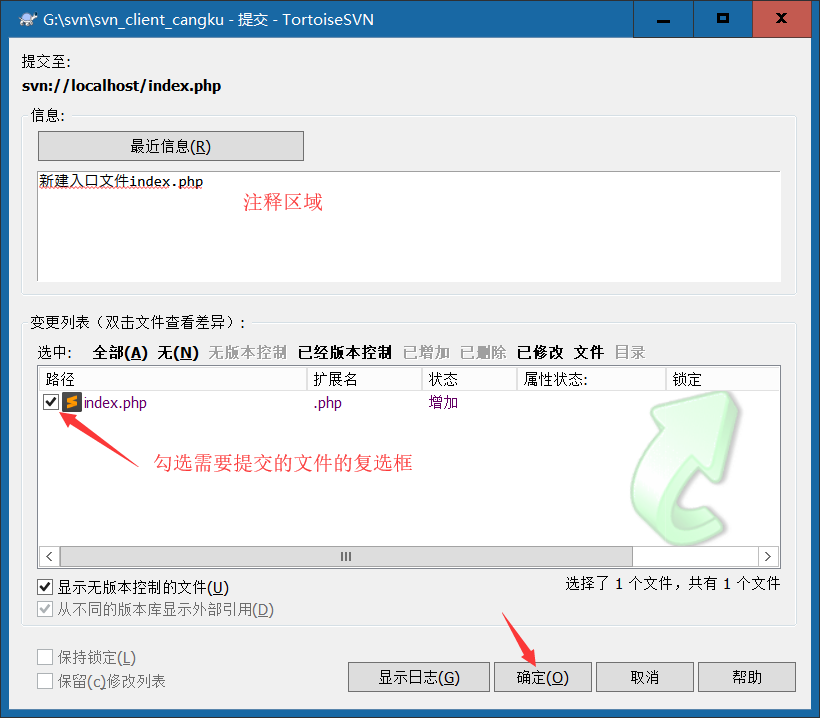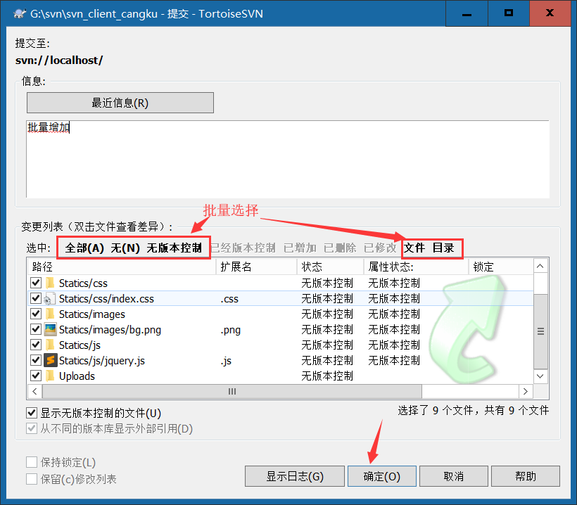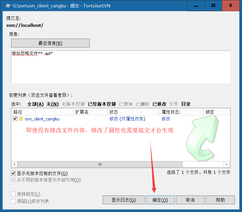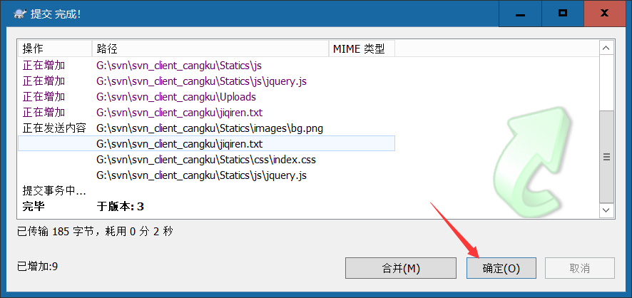⑥通过提交操作(commit)把代码提交到svn仓库