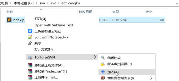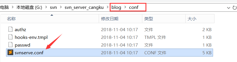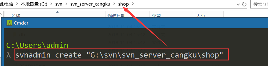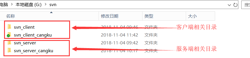 示例:svnadmin create “G:\svn\svn_server_cangku”