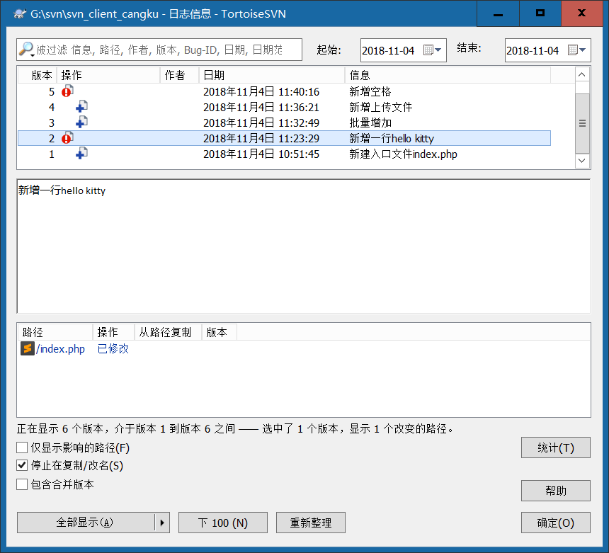删除原先的svn_client_cangku2目录,重新创建目录,重新的去检出