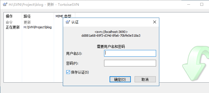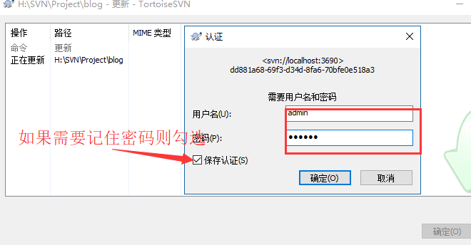 输入用户名和密码,可以选择保存认证信息(即记住用户名和密码),如果认证成功,以后就不用再次认证。否则,每一次操作都需要进行认证。