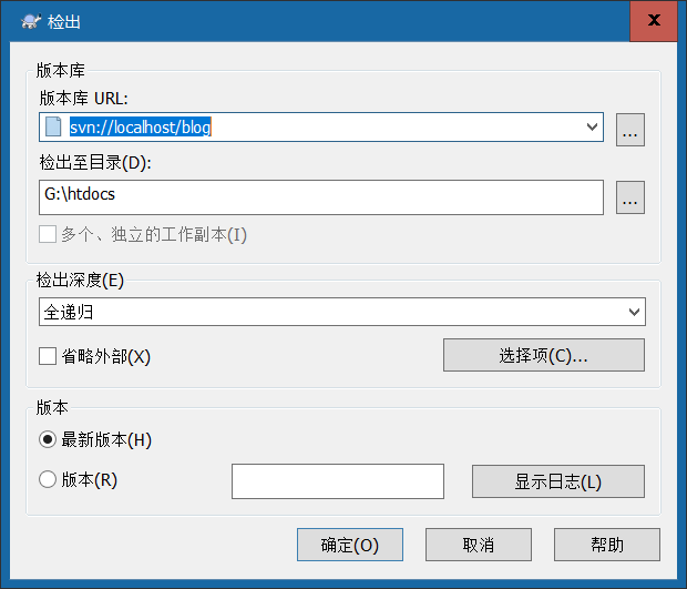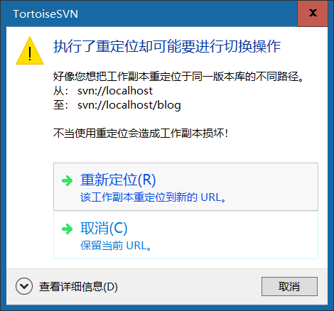 原因是blog仓库的检出地址还是原来的svn://localhost,需要改变为svn://localhost/blog
