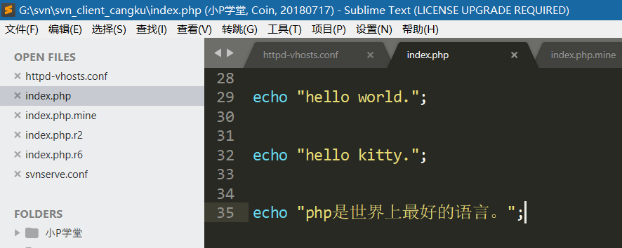 ⑪开发经理从svn仓库更新代码(update),查看代码。