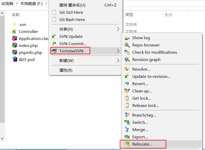 操作方式:右键->TortoiseSVN -> relocate(重新定位)重新定位仓库地址