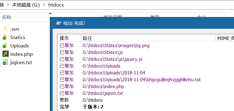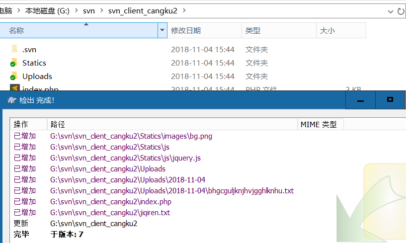 检出操作完成了两件事:一和服务器建立联系 二从svn服务器的仓库下载代码