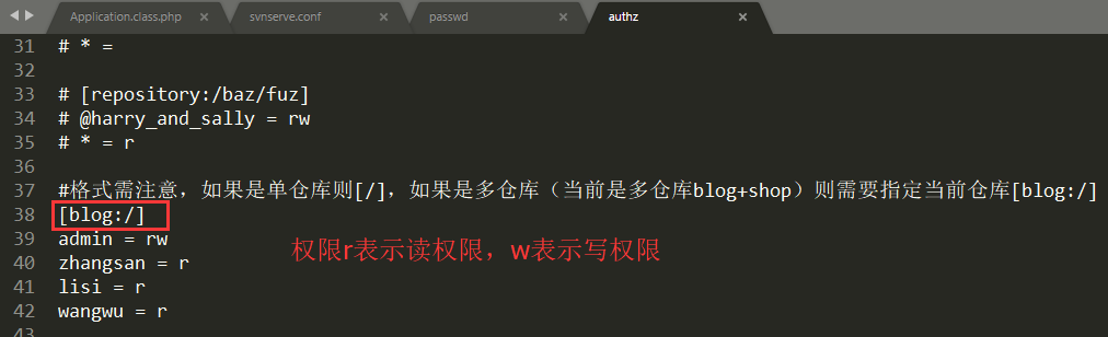 svn提供了一个权限控制功能,可以限制用户对仓库的读写权限。