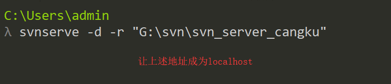 示例:svnserve -d -r “G:\svn\svn_server_cangku\blog”