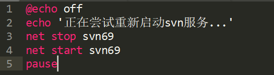 SET SVN=”F:\Subversion\svn.exe” 设置svn指令目录