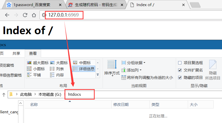 ① 在服务器端apache创建一个文件夹接收同步数据,比如创建G:\htdocs目录
