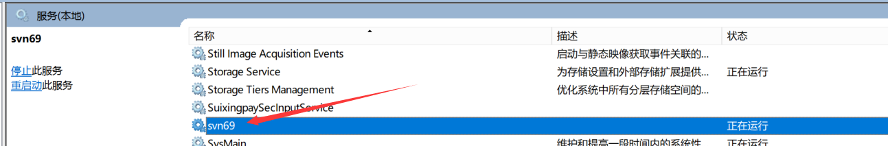 点击“服务”,查找创建服务时使用的服务名称比如svn