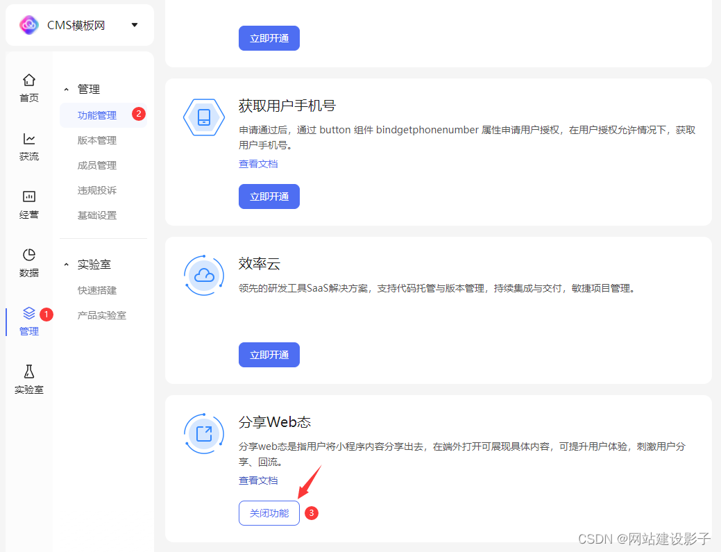 开通路径:管理--功能管理--分享Web态;一键开通“分享 Web 态”,线上即时生效。