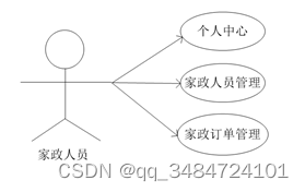 家政人员具有个人中心、家政人员管理、家政订单管理三个主要的功能模块。家政人员的用例图如图2-2所示: