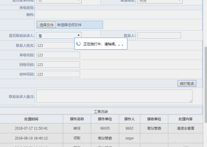 function load() {var fromobj=$("#formobj");$("").css({display: "block",width: "100%",height: fromobj.height()}).appendTo(fromobj);$("").html("正在拨打中,请稍候。。。").appendTo(fromobj).css({display: "block",left: (fromobj.outerWidth(true) - 190) / 2,top: (fromobj.height() - 45) / 2});}//取消加载层function disLoad() {$(".datagrid-mask").remove();$(".datagrid-mask-msg").remove();}