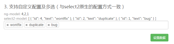 multiple 表示可多选, Config用于配置数据来源, select2-model用于指定用户选择后提交的变量