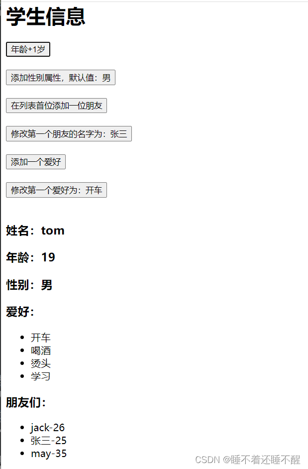 5.一旦data中的数据发生改变,那么模板中用到该数据的地方也会自动更新