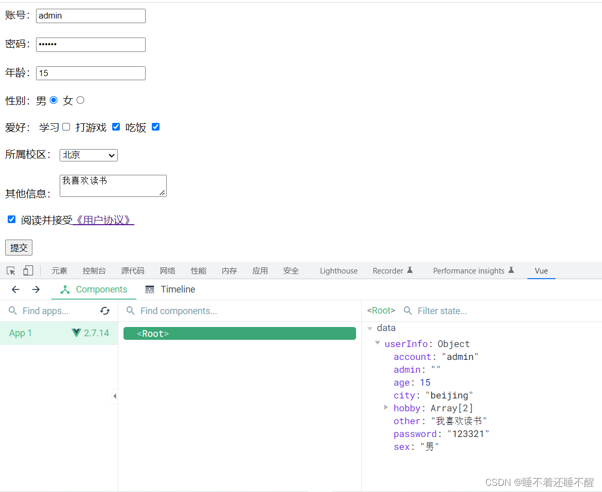 v-model:value可以简写为v-model,因为v-model默认收集的就是value值