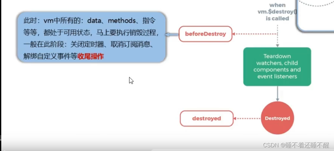 3.一般不会再beforeDestroy操作数据,因为即使操作数据,也不会再触发更新流程了