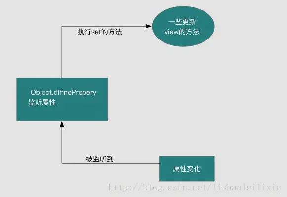 data变化更新view的重点是如何知道view什么时候变化了,只要知道什么时候view变化了,那么接下来的就好处理了.这个时候我们上文提到的Object.defineProperty( )就起作用了.通过Object.defineProperty( )对属性设置一个set函数,当属性变化时就会触发这个函数,所以我们只需要将一些更新的方法放在set函数中就可以实现data变化更新view了