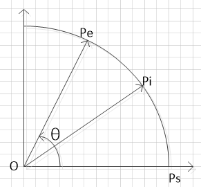 圆心坐标O(xc,yc),起始点Ps(x1,y1),终点Pe(x2,y2),起始点也是当前点。圆弧插补思想就是算出OPs与OPe的夹角θ,进而求出PsPe段圆弧长度L=rθ,程序设定圆弧插补精度为p,则插补段数为N=L/p,则可以求出第i段的角度为θi=θ1+θ*i/N,则Pi.x=PO.x+r*cos(θs+θi)=PO.x+rcosθscosθi-rsinθssinθi=PO.x+ps.x*cosθi-Ps.y*sinθi,Pi.y=PO.x+r*sin(θs+θi)=PO.x+rsinθscosθi+rcosθssinθi=PO.x+ps.y*cosθi+Ps.x*sinθi,则从Ps到Pe的圆弧插补可以等效于从Ps经一系列中间点P1,P2,.....Pn再到Pe的一系列直线插补。