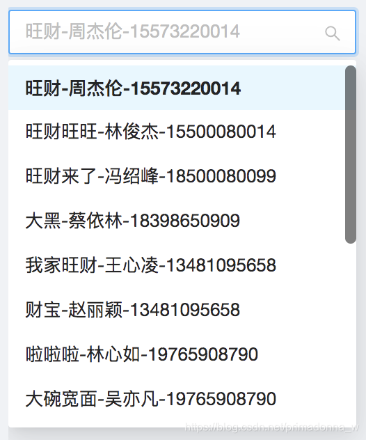这个方法有个缺点:只能检索到第一个匹配的,例如输入“旺”,只能匹配一个option中的第一个旺,option中剩下的其它“旺”没有高亮,如下: