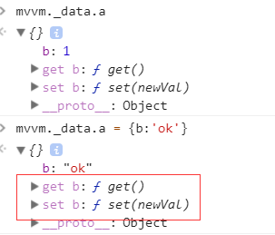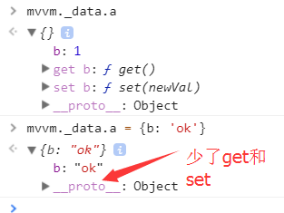 还是在可爱的控制台上,敲下这么一段代码 mvvm._data.a = {b:'ok'}