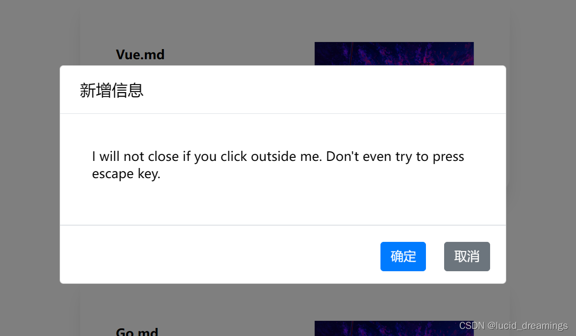 本插件使用的是Vue3框架下原生的JS、CSS,不涉及TS以及SCSS。是一个仅供参考的自定义插件;本文的样式参考了bootstrap4的模态框以及PorkCanteen的代码,结合了复用性+美观性