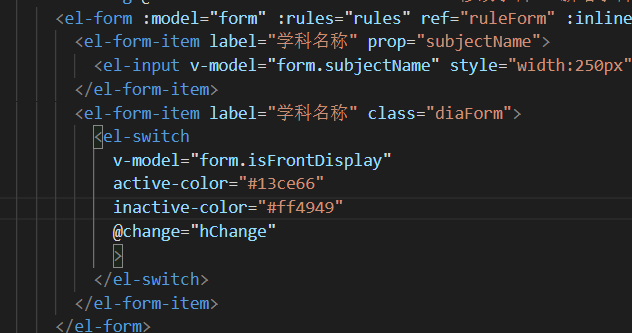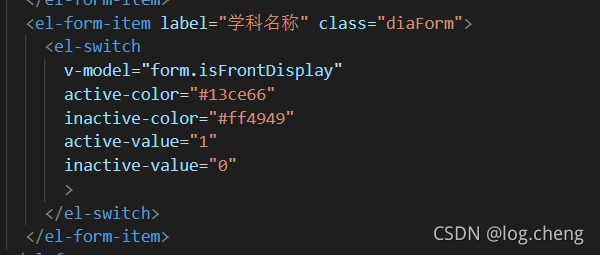三.如果想要根据Switch开关时显示的是别的值,可以通过设置active-value和inactive-value的值来获取,如图所示: